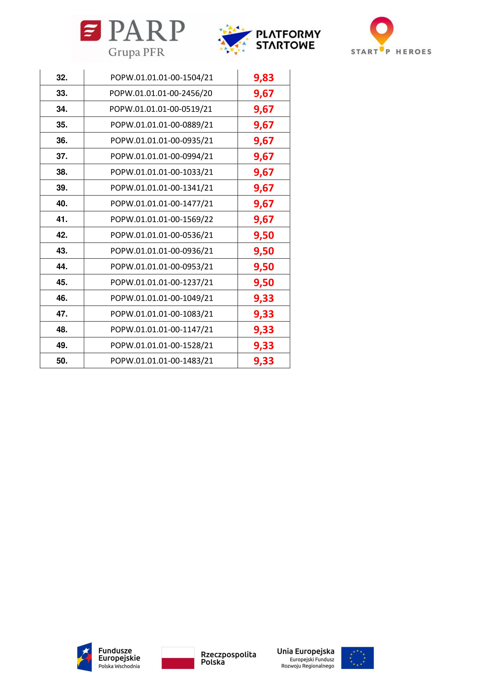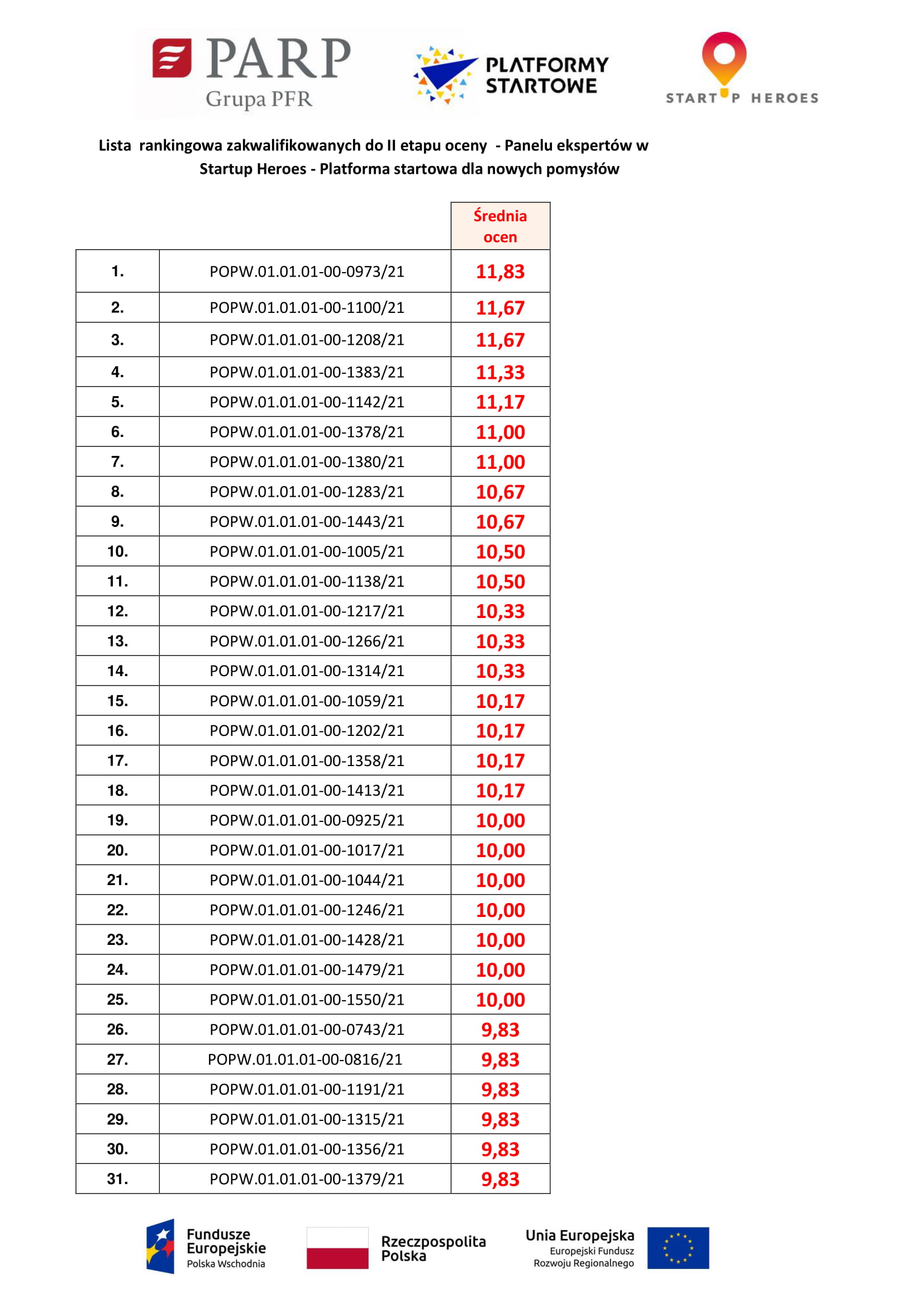 Lista rankingowa zakwalifikowanych do II etapu oceny – Panelu ekspertów w Startup Heroes – Platforma startowa dla nowych pomysłów.