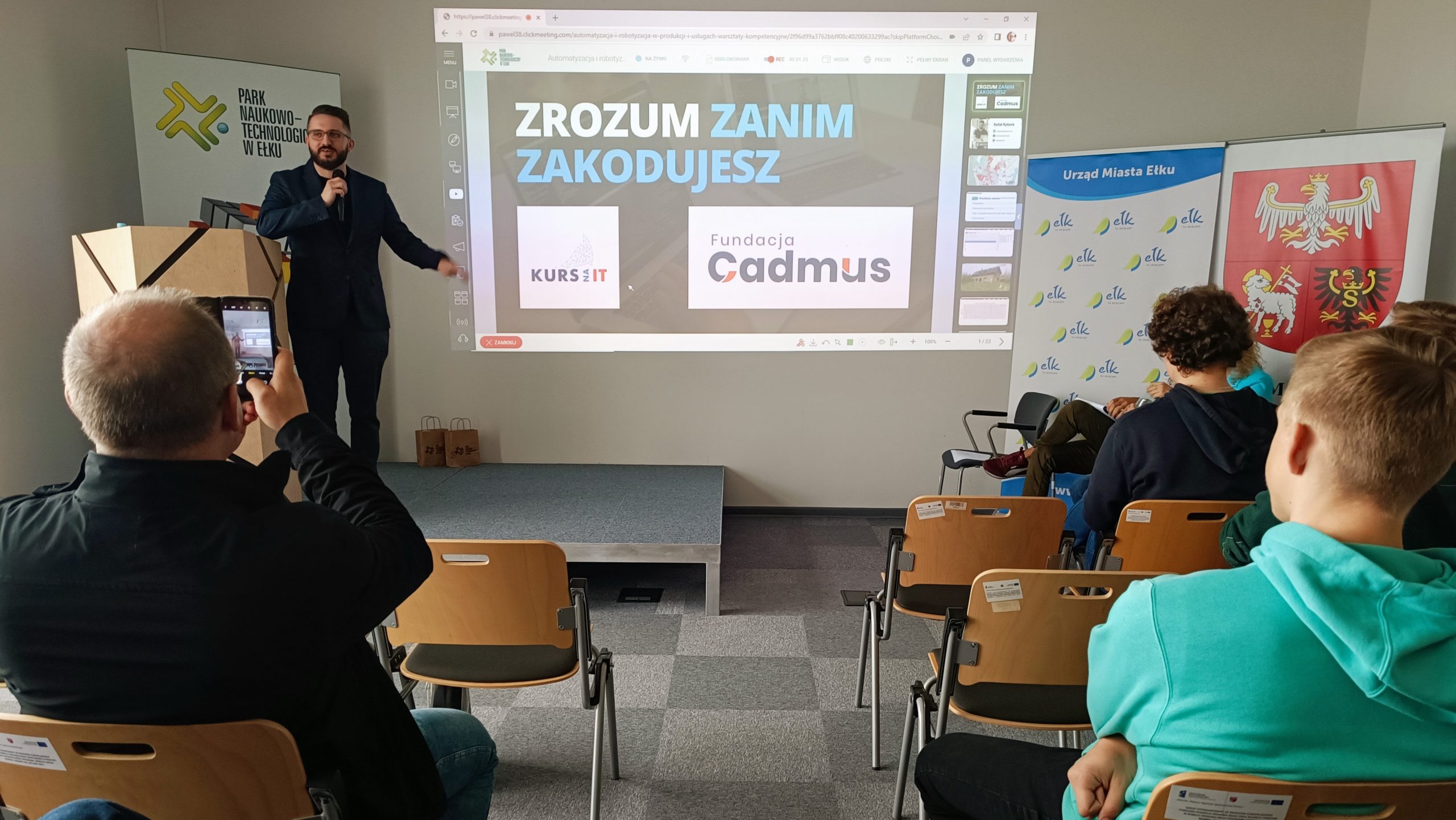 Świetni partnerzy merytoryczni wydarzenia Politechnika Białostocka, Inkubator Technologiczny w IławieFundacja Cadmus, PJK Consulting starali się podpowiedzieć uczniom ełckich liceów i techników, jak odpowiednio pokierować swoją ścieżką kształcenia żeby wpisać się w najsilniejsze trendy na rynku pracy związane z rozwojem przemysłu 4.0.